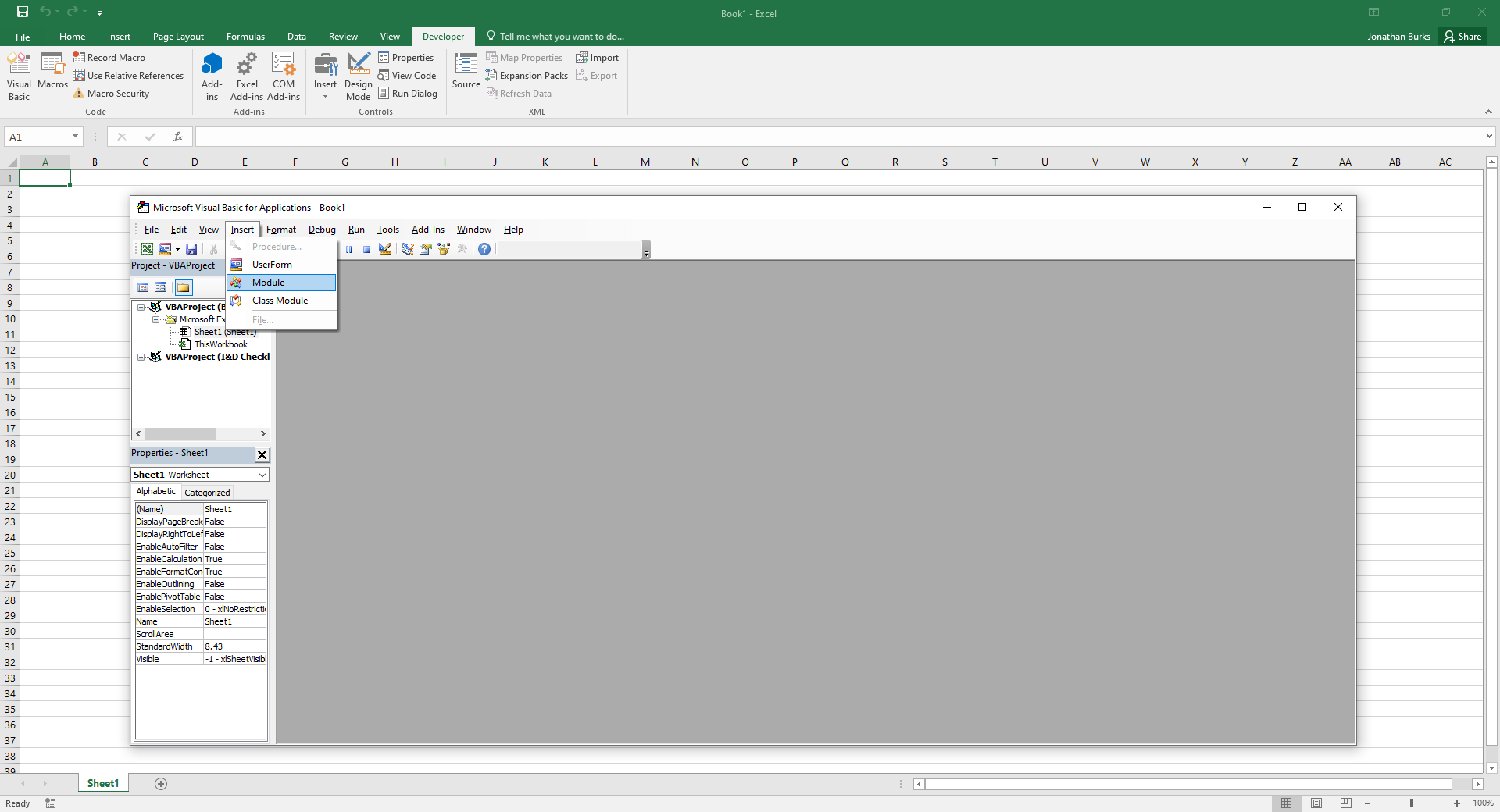 Insert > Module.